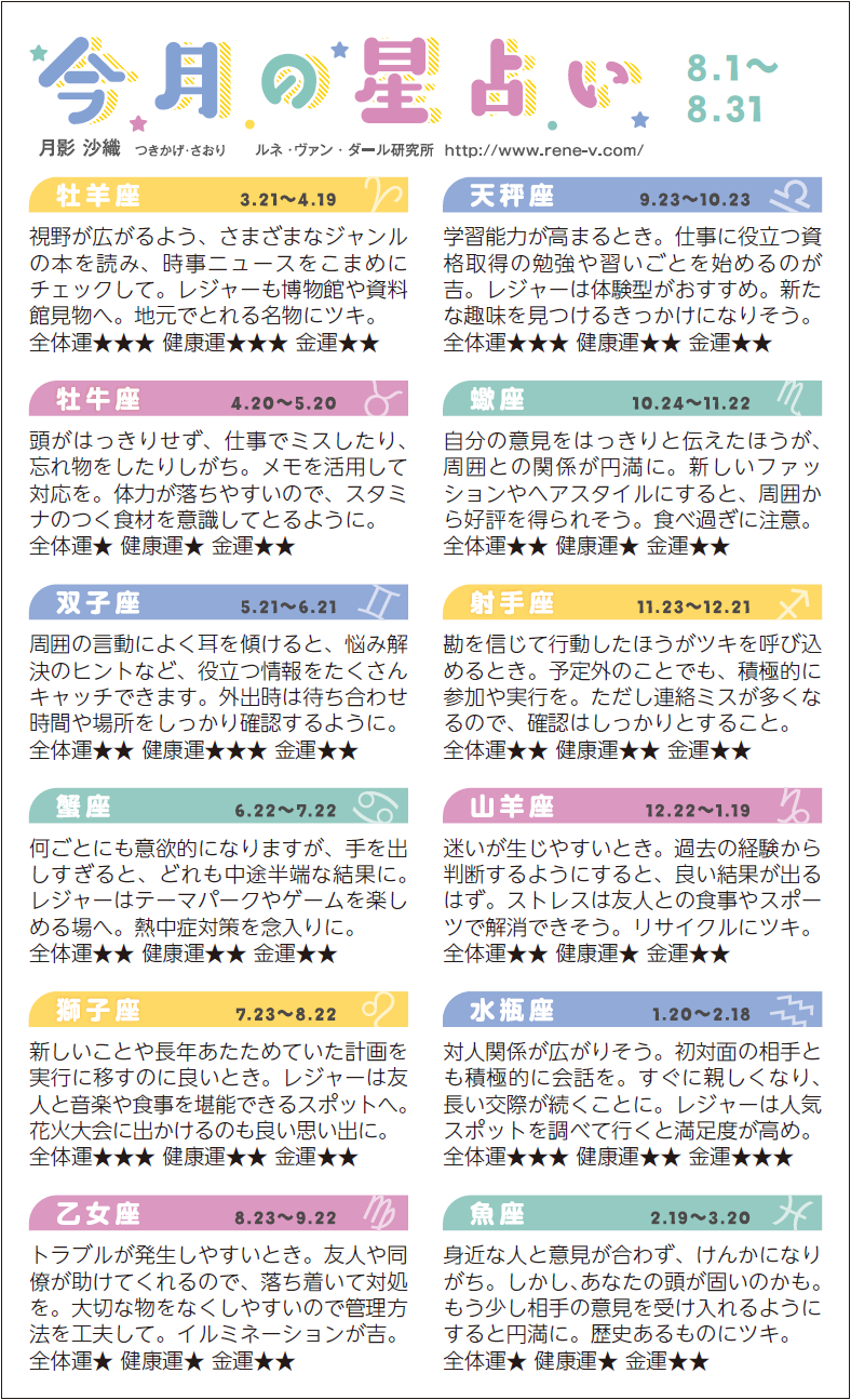 2017年8月の運勢