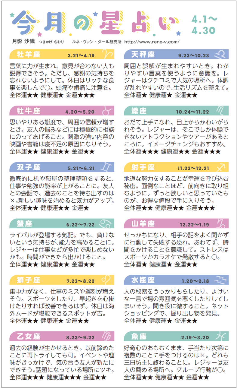 2018年4月の運勢