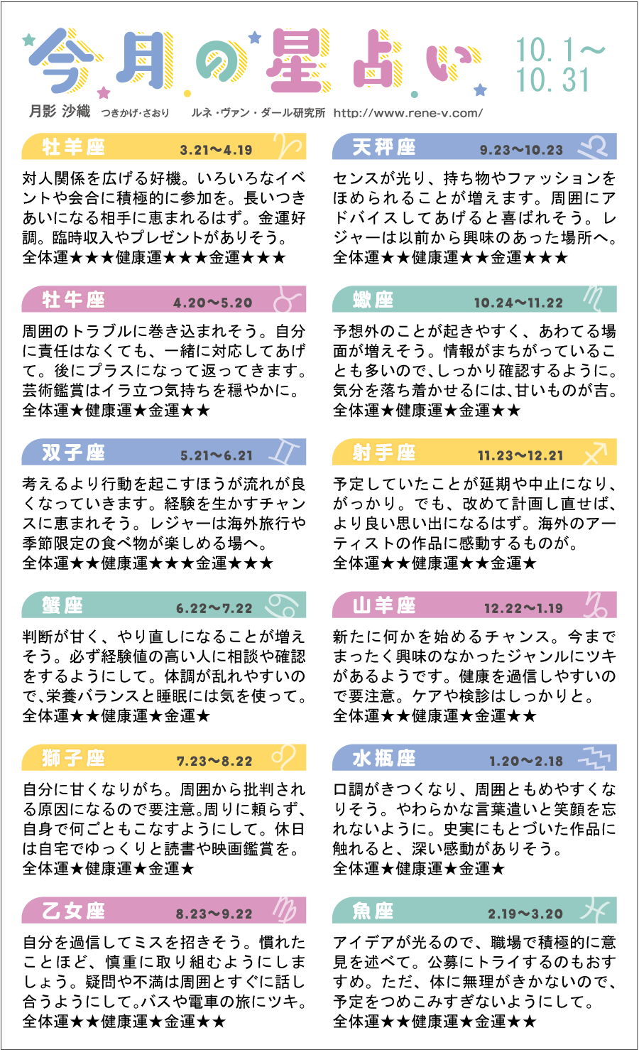 2018年10月の運勢
