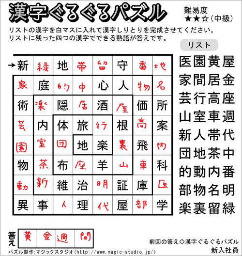 パズル解答の目次に戻