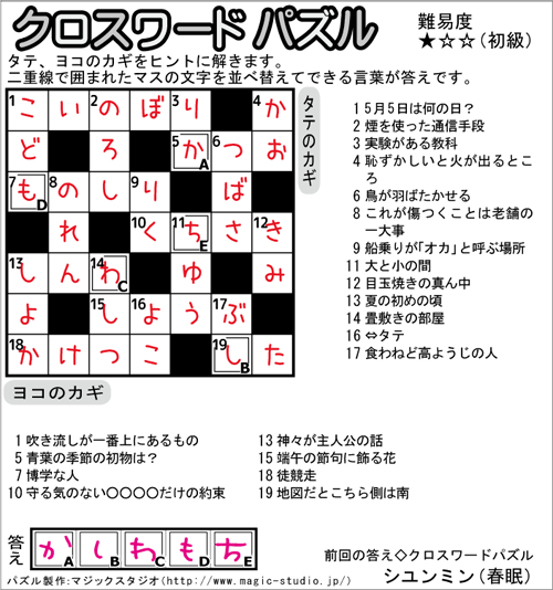 トップSUN歩通信へようこそ>パズルの答え