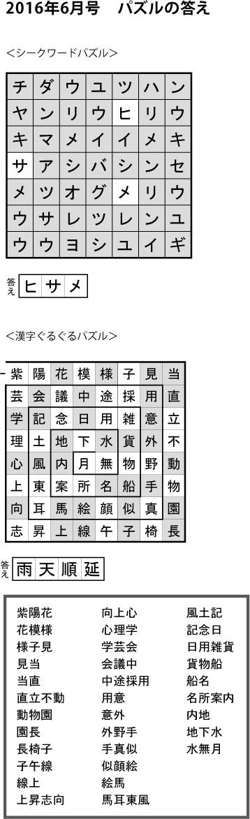 トップSUN歩通信へようこそ>パズルの答え