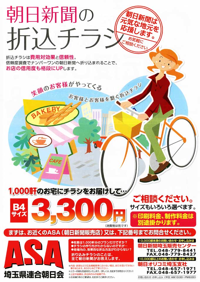 ・B4サイズ 1,000件のお宅にチラシをお届けして・・・ 3,300円(印刷・製作費別)
